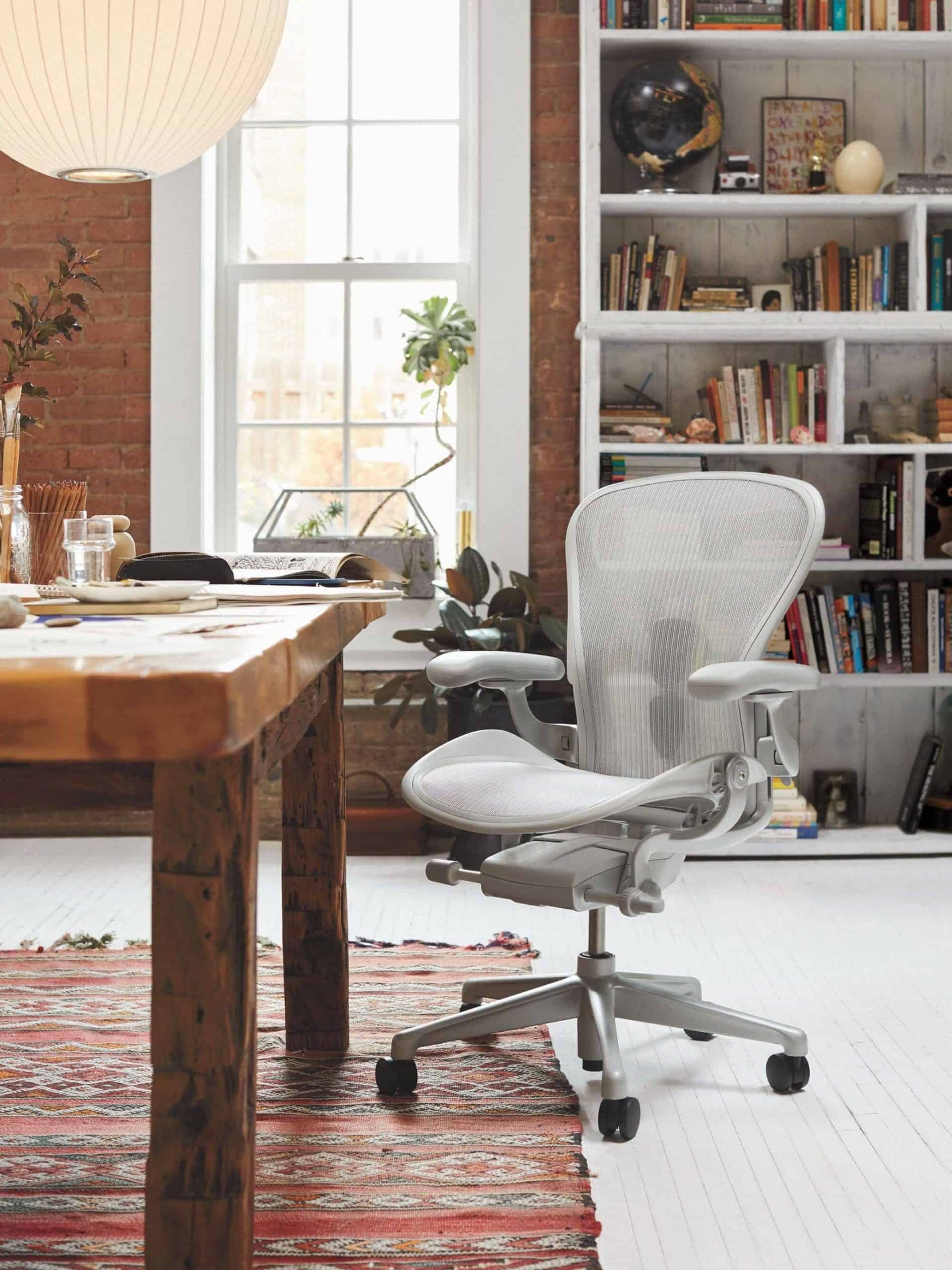 Aeron er vel nok en af de mest ikoniske kontorstole – Berømmet for både sit udseende og ergonomiske fordele. Desuden er stolen 91% recycable og Cradle to Cradle Certified (Silver).