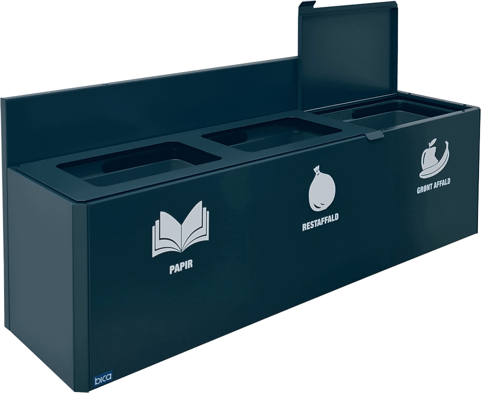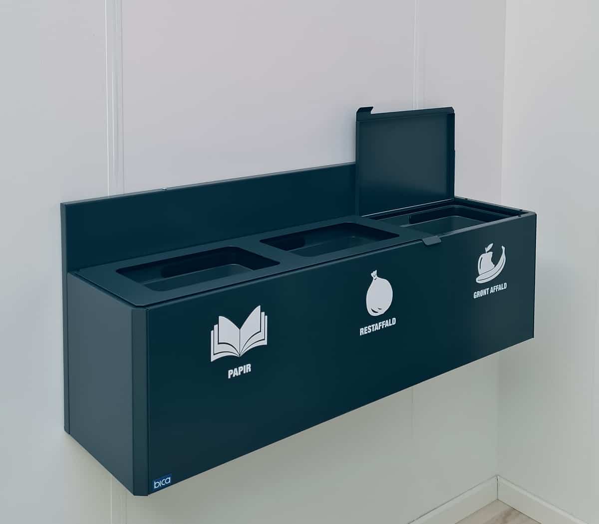 Leveres med 3 praktiske 20 liters inderbeholdere i genbrugsplast, der letter tømning. Bagsiden er designet så den beskytter væggen mod smuds ved hjælp af den høje bagkant.