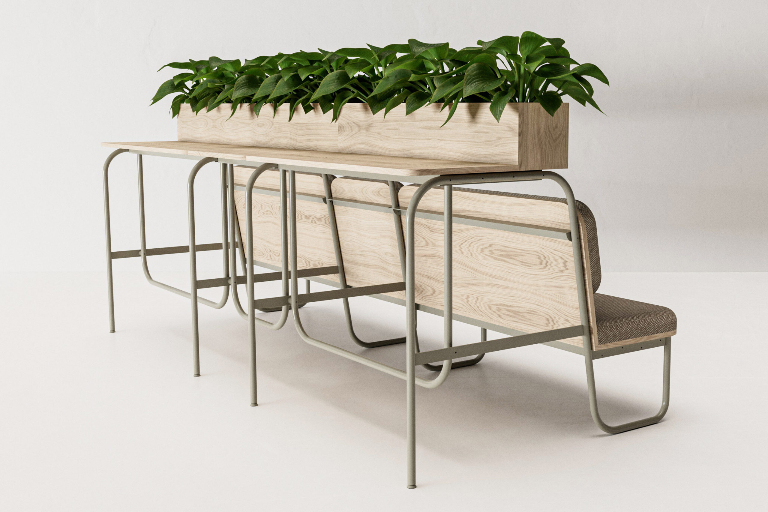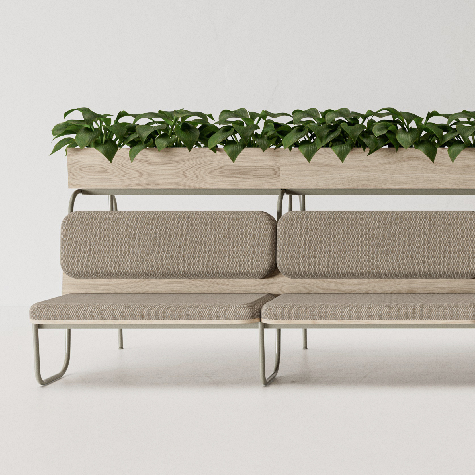 CANTINA sofa bench inviterer til samtaler og en stille stund. Du bliver grebet af polstrede moduler, varmet af trædetaljerne og omkranset af de grønne plantekasser. Og med sine enkle linjer og modulopbygning passer CANTINA sofa bench ind i langt de fleste fællesområder.