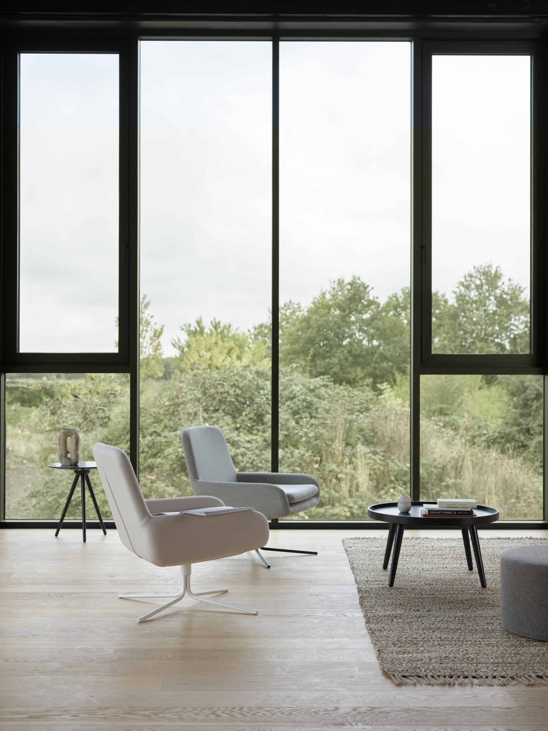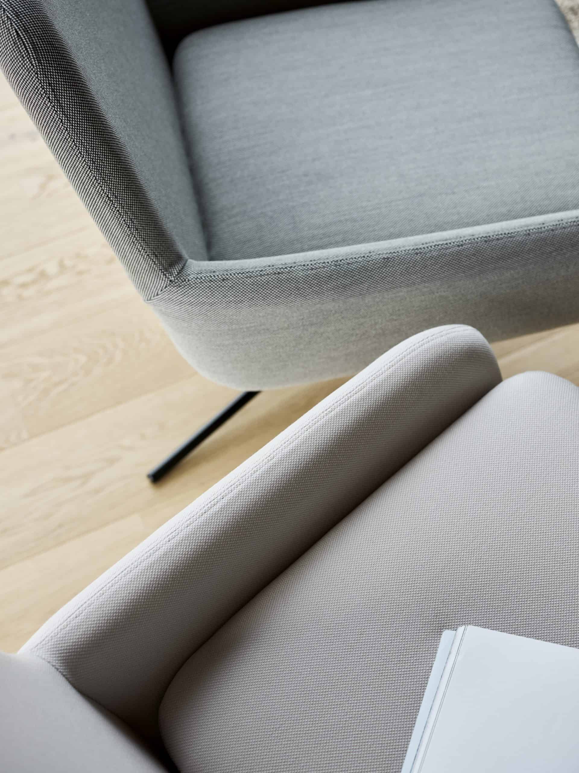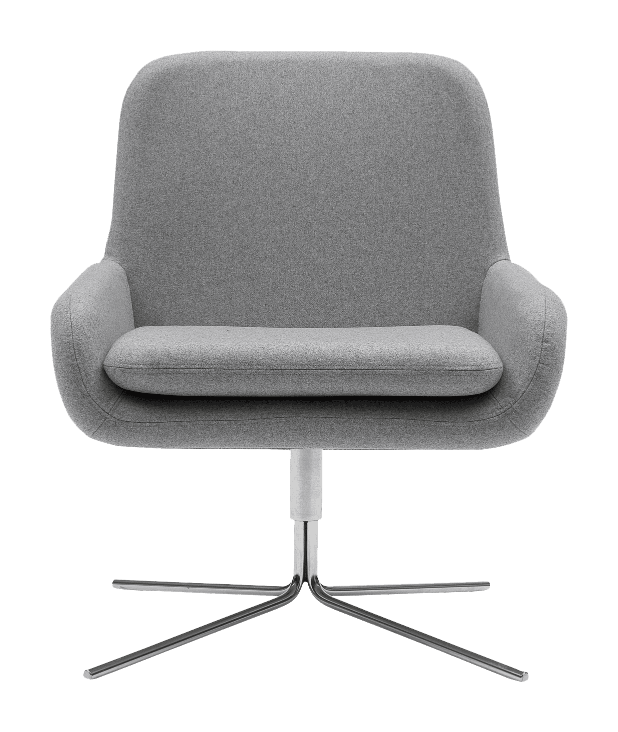Lækker loungestol på swivelstel. Kan leveres i en lang række forskellige tekstiler, samt med flere stelfarver. Kontakt os for prøver og vejledning.