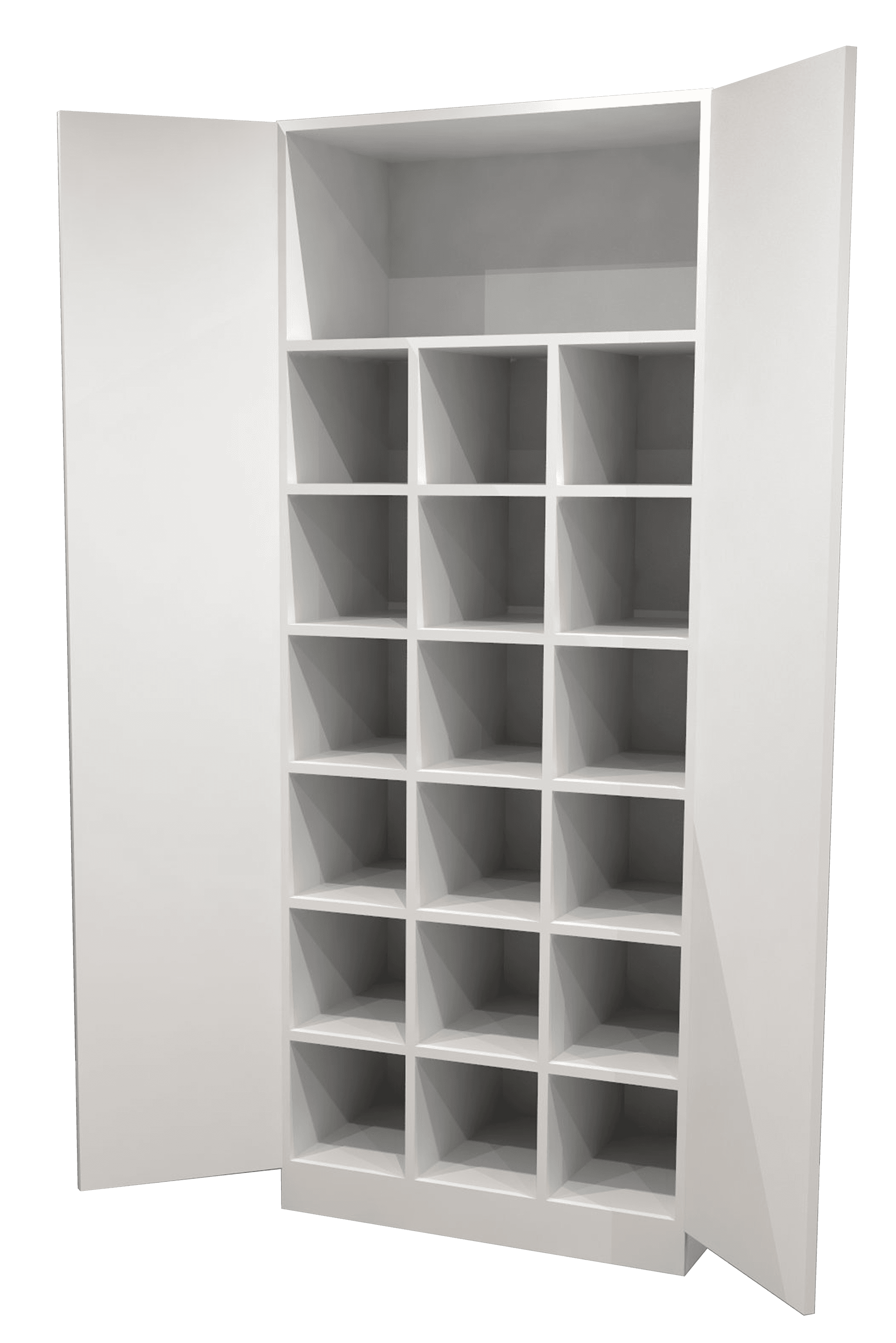 Højskab med 18 rum. Her vist i hvid decorlaminat. Dansk produceret.