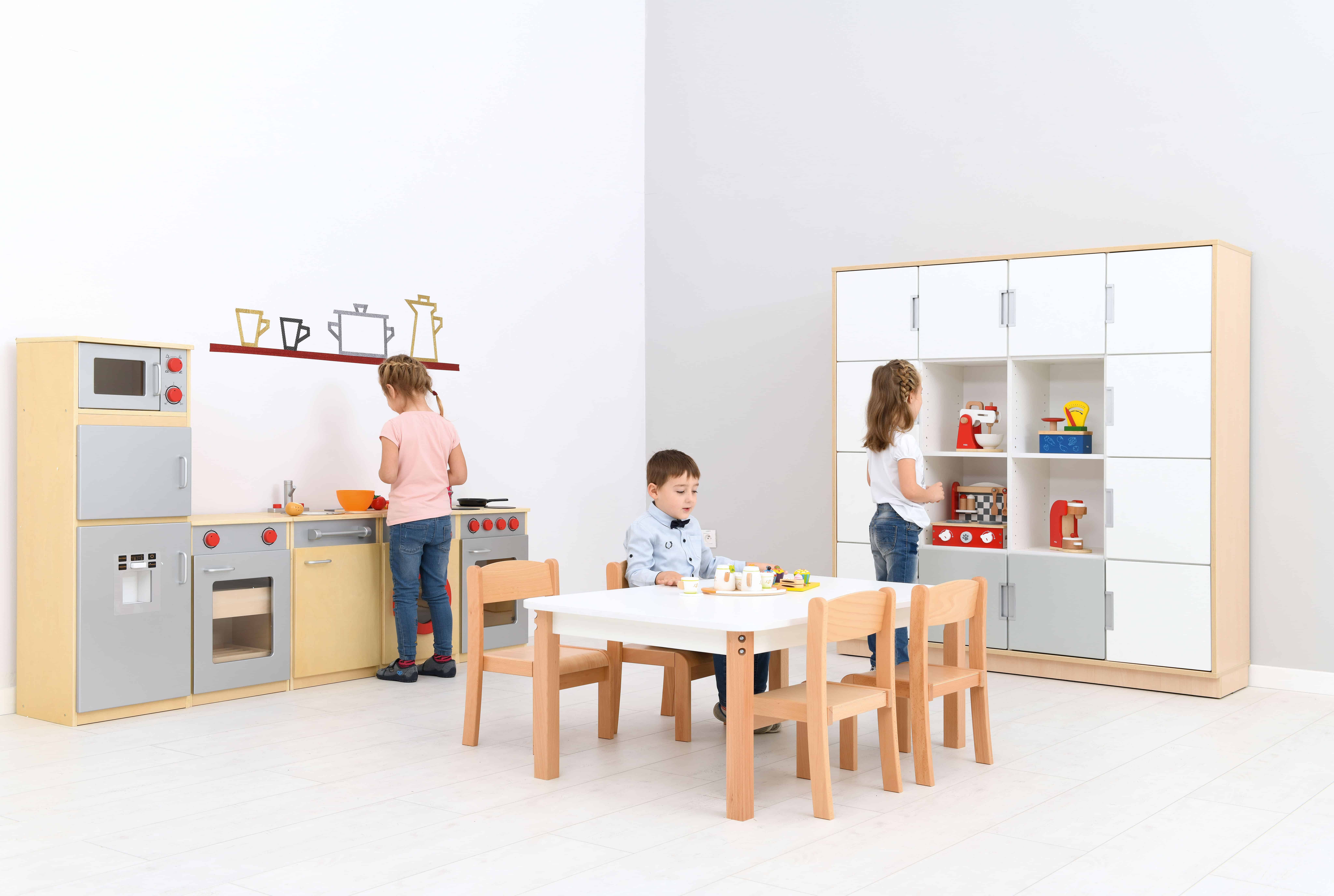 Et legekøkken er de perfekte rammer til rolleleg, hvor de små kokke kan udfolde deres evner og kreativitet. Legekøkkenet kan sammensættes så det opfylder jeres behov og ønsker. Børnene kan lave fantasifulde festmåltider, afholde bagedyst og efterfølgende vaske service op i legehåndvasken. Der er mange timers underholdning for børnene i legekøkkenet og legen passer til alle aldre og niveauer.