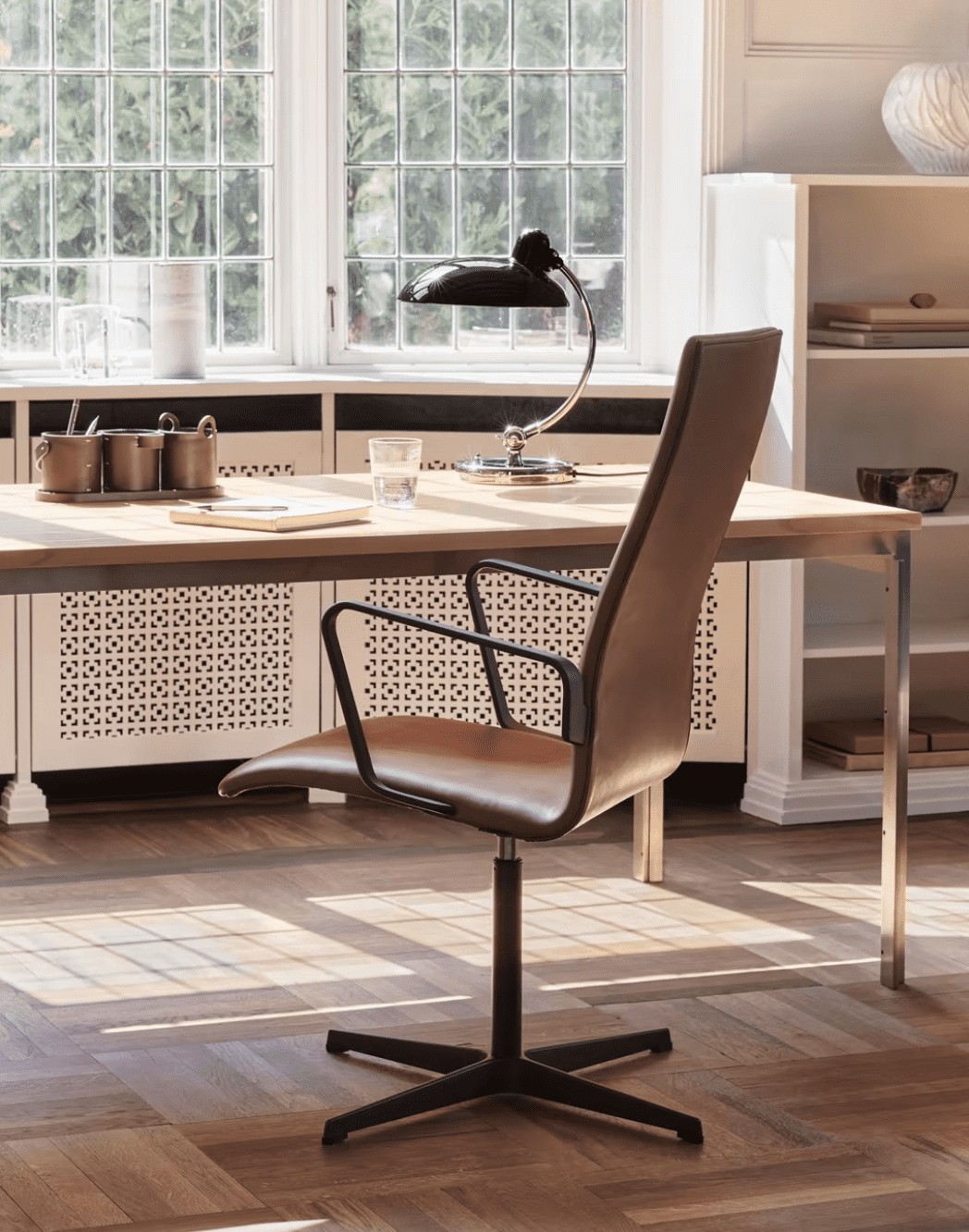 Den elegante Oxford™ stol, oprindeligt designet af Arne Jacobsen til professorerne på St. Catherine’s College i Oxford, England, er nu blevet opgraderet med suveræn siddekomfort tilpasset en ny generation af arbejdspladser og moderne behov.