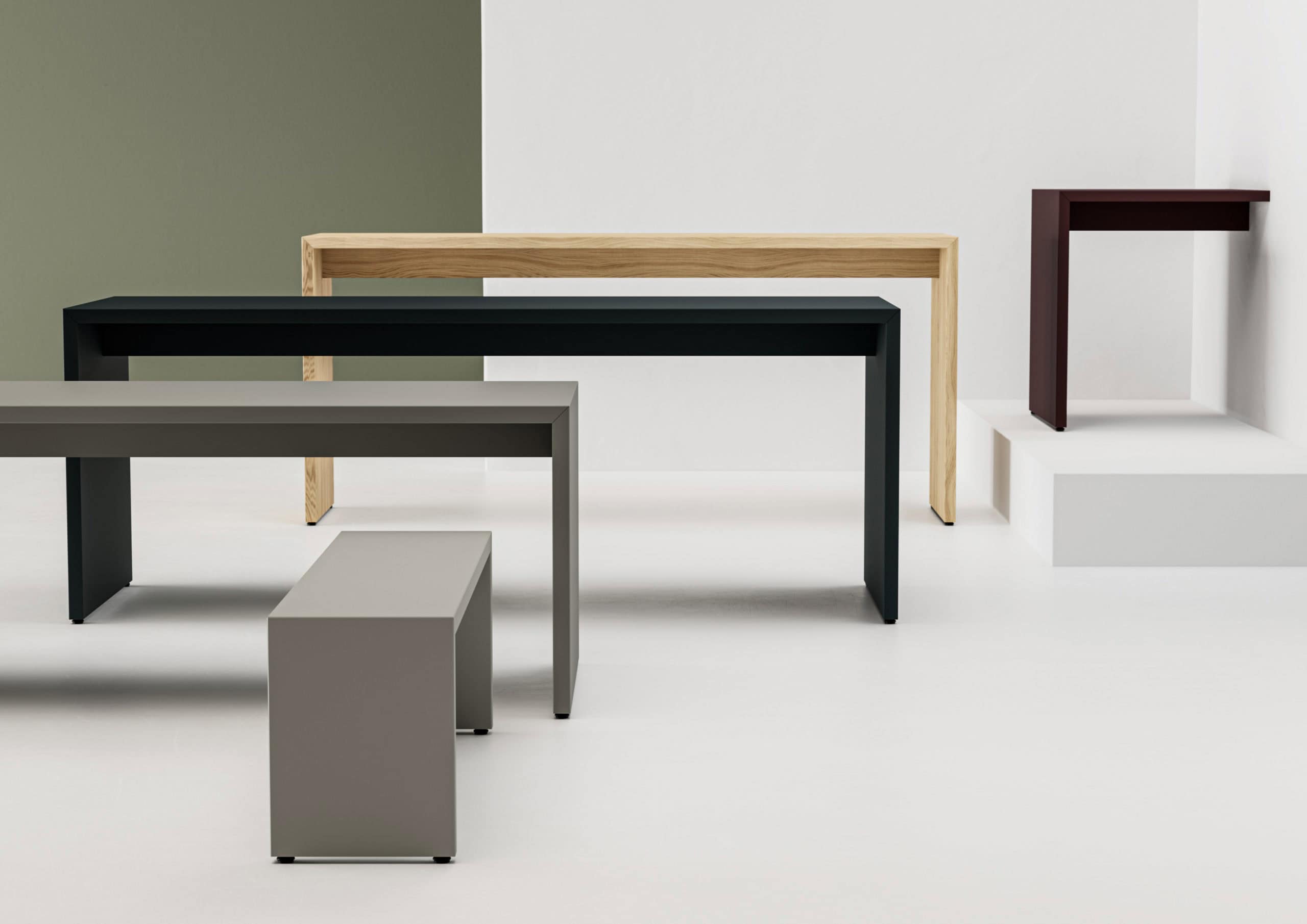 Gavlbordene er altid samlet i gering, hvilket sikrer en solid og holdbar konstruktion. De kan monteres både væghængt eller gulvmonteret, hvilket gør dem ideelle til gangarealer og zoner, hvor brandmyndighederne stiller særlige krav til møblementet.