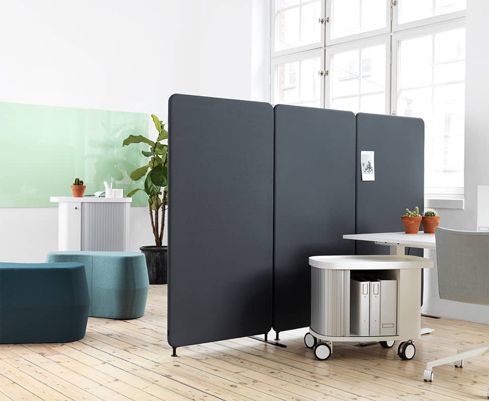 Softline 30 gulvskærm er en lydabsorberende skærm i et moderne og rent design. Denne skærm er ideel til kontoret, daginstitutionen eller skolen til at afskærme arbejdspladser og sænke støjniveauet.