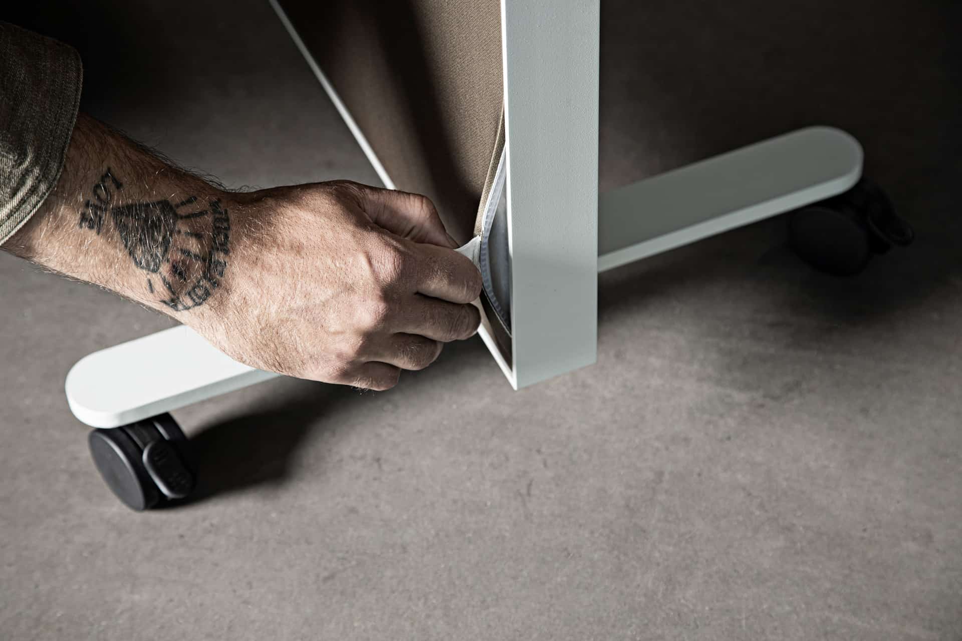 SS50 Floor Screen giver uendelige muligheder for at skabe smukke stand-alone akustiske interiørdesigns. Gulvskærmen er konstrueret til at afskære støj fra en arbejdsstation til en anden og tilbyder fremragende akustisk funktionalitet og en enestående række af designmuligheder. Vælg mellem en bred vifte af rammefarver, foddesign og kanvasmuligheder for at få denne akustiske løsning til at passe til dine særlige behov. Skærmen kommer med en række specielle funktioner, bl.a. det karakteristiske Akuart udskiftelige lærred og en designet til at gøre det muligt at genbruge hver eneste komponent af skærmen.