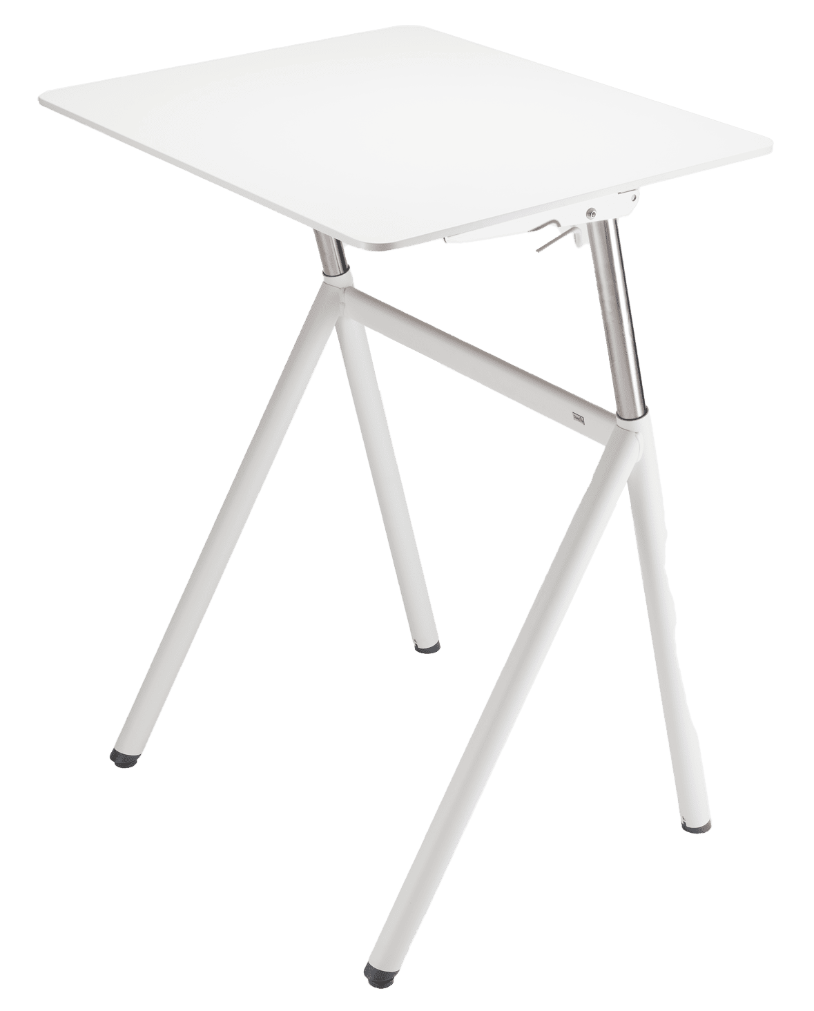 Et manuelt hæve- og sænkbart bord, som nemt kan indstilles i højden. Der behøves derfor ikke at tænkes på strømforsyning, hvilket gør bordet nemt at placere i et rum og man slipper for ledninger på gulvet. Perfekt til kateder, til elever med særlige behov eller sat i små øer til gruppearbejde osv. Bordet hæves og sænkes med en gasfjeder, som styres med et håndtag på siden. Laveste højde er 75 cm, højeste højde er 119 cm.