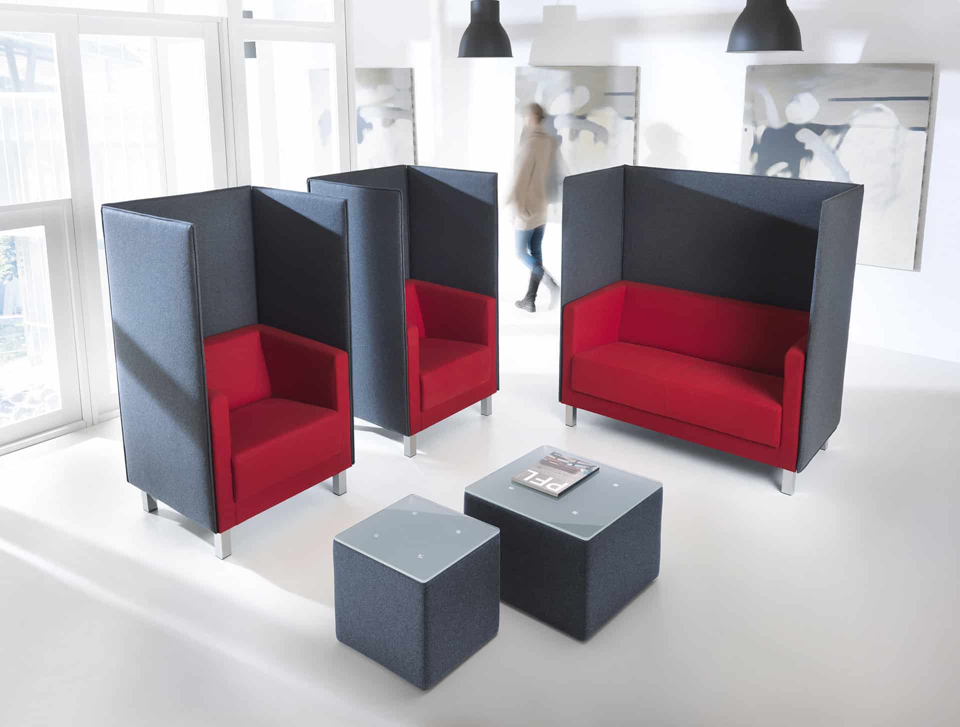 2,5 personers højrygget sofa på medestel. Kan også leveres uden høj ryg. Fås desuden som loungestol, 2 og 3 personers sofa.