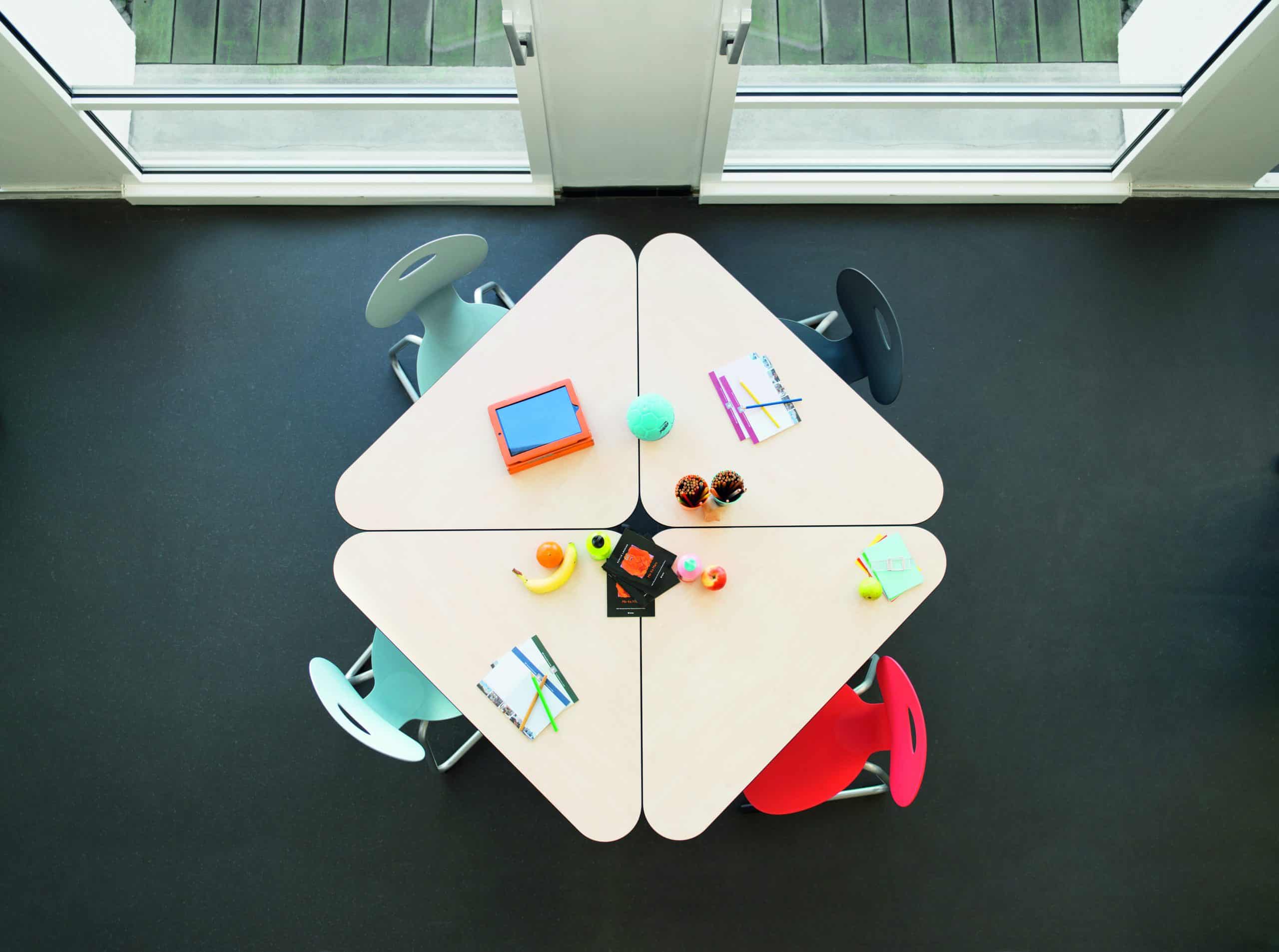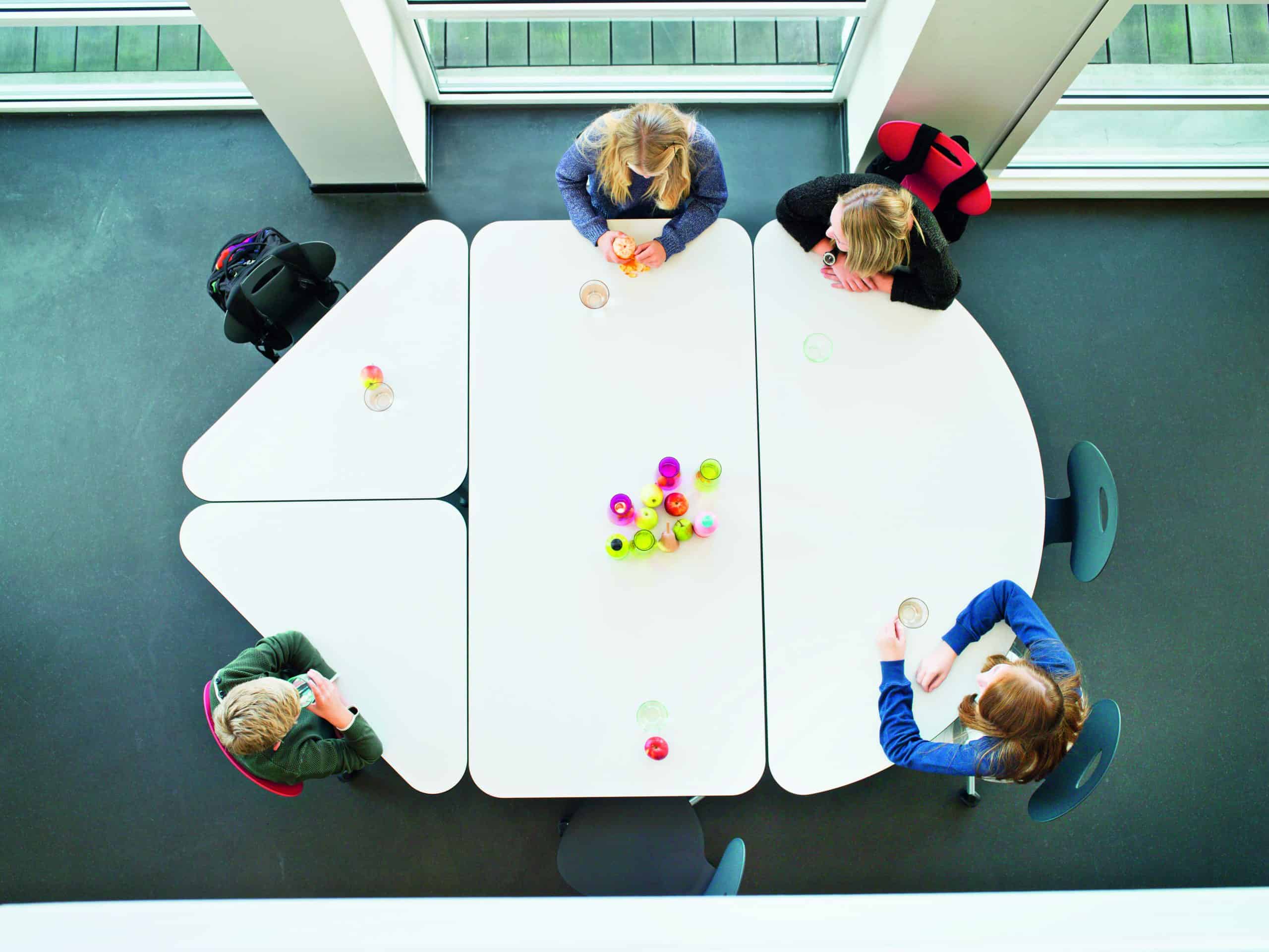 Wave-bordet er velegnet til almindelige størrelser klasselokaler. Bordet kan sammensættes med Zone & Float.