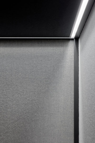 Ventilationsydelsen er høj, uden generende støj og vibrationer. Belysning og ventilation er integreret i loftets inderkant, hvilket gør, at det næsten ikke er synligt. De japanske æstetiske påvirkninger er mærkbare i linjerne og den firkantede komposition. Det bliver ekstra tydeligt for dem, der tilføjer det smukke espalier, der nemt monteres på ydersiden af glasvæggen. En løsning, der forstærker den æstetiske oplevelse, øger privatlivets fred og påvirker lydbilledet udenfor rummet.